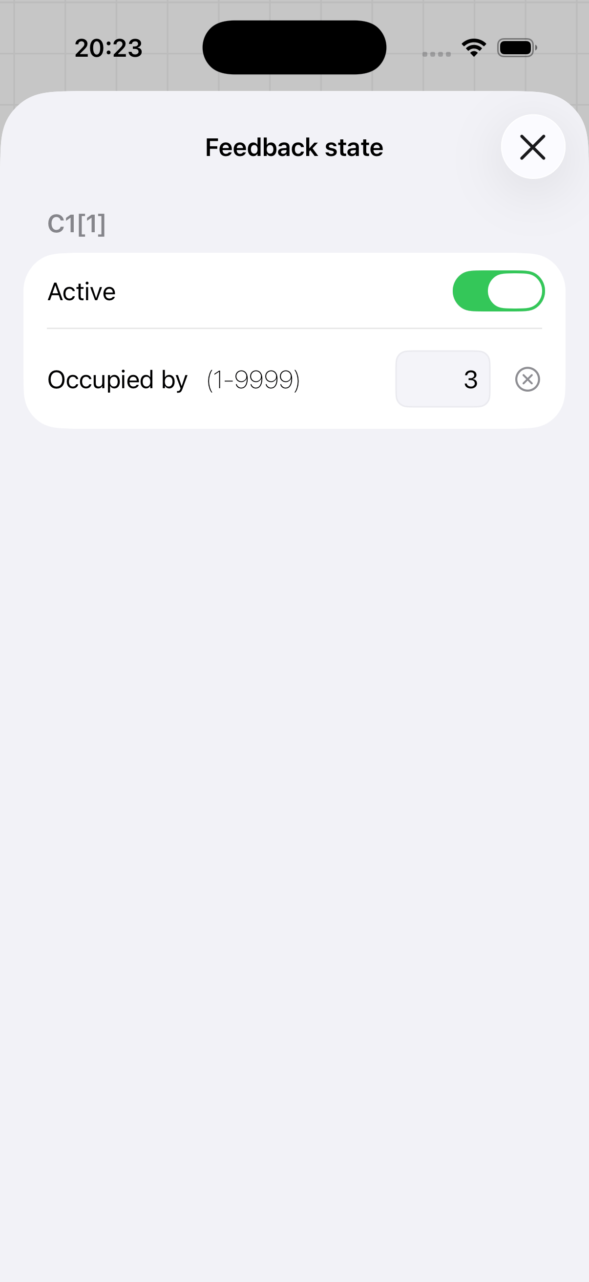 Die Hauptfunktion des Debug-Modus ist die Simulation von Rückmeldeereignissen. Tippen Sie im Stellwerk-Tab auf ein Gleiselement, das einen Rückmeldesensor konfiguriert hat. Es erscheint ein Dialog, in dem Sie: